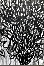 使用画材:ボンド墨、アクリル絵の具、木製パネル