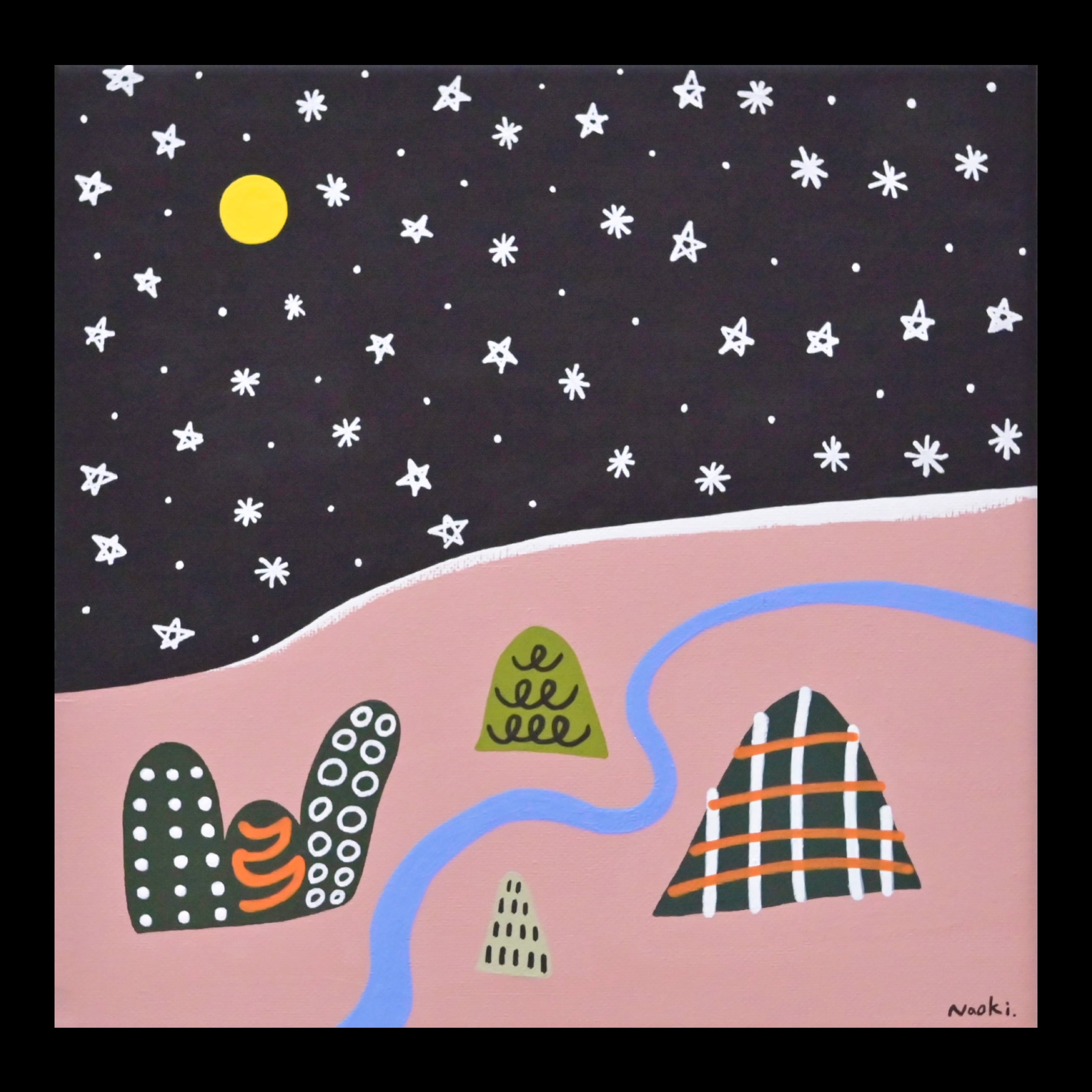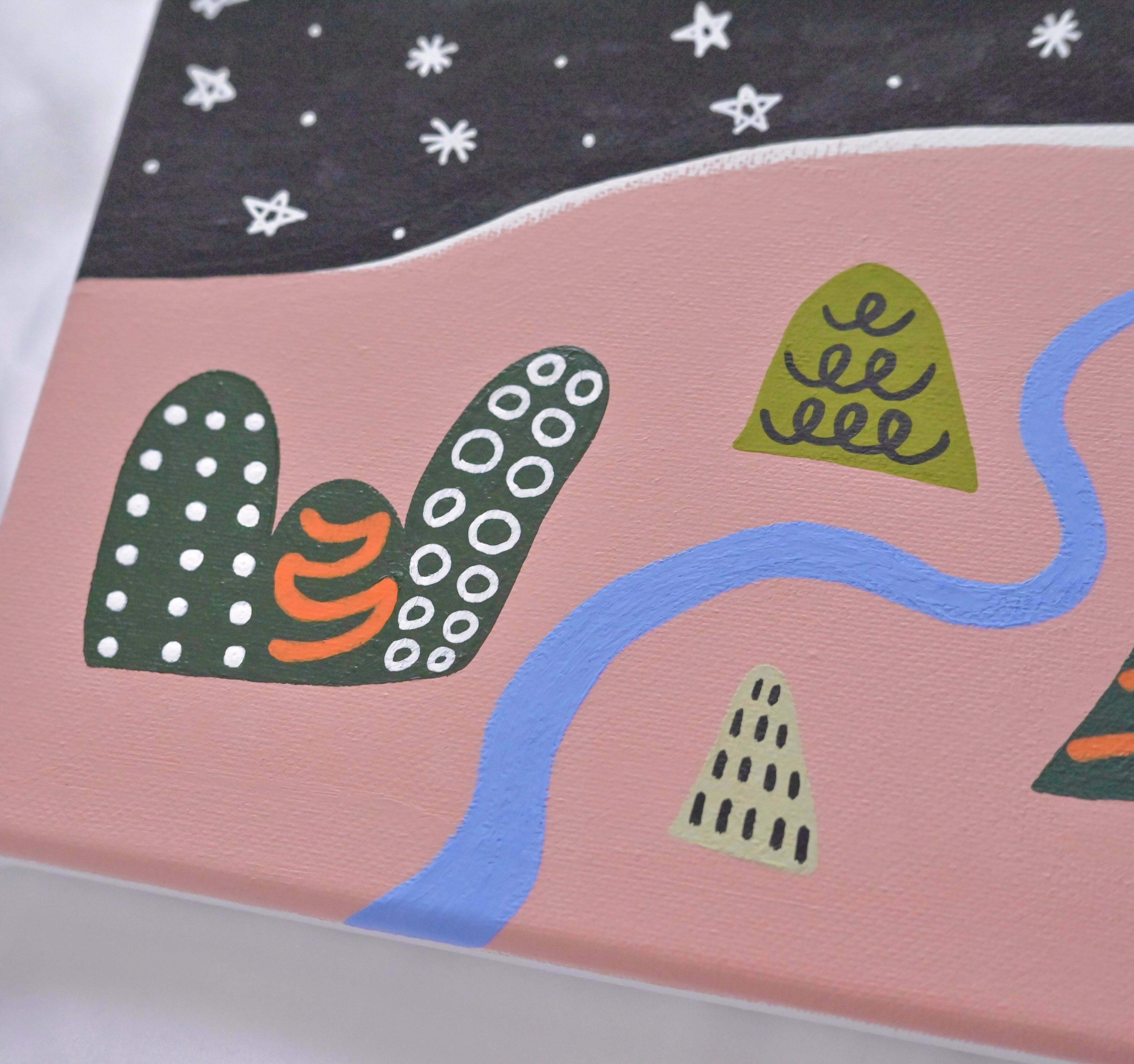 使用画材:アクリル絵の具、マーカー、キャンバス