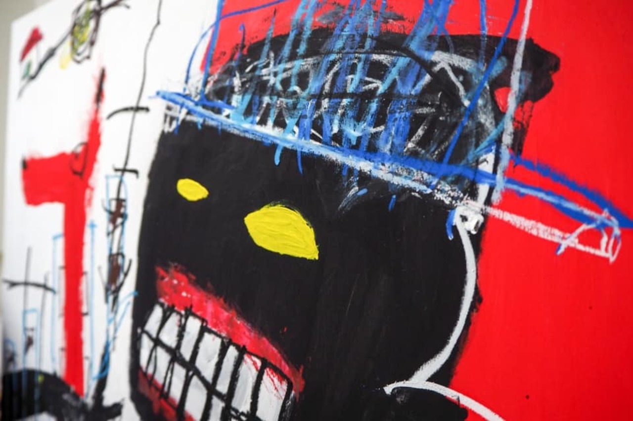 使用画材:アクリル絵の具、オイルパステル、木製パネル