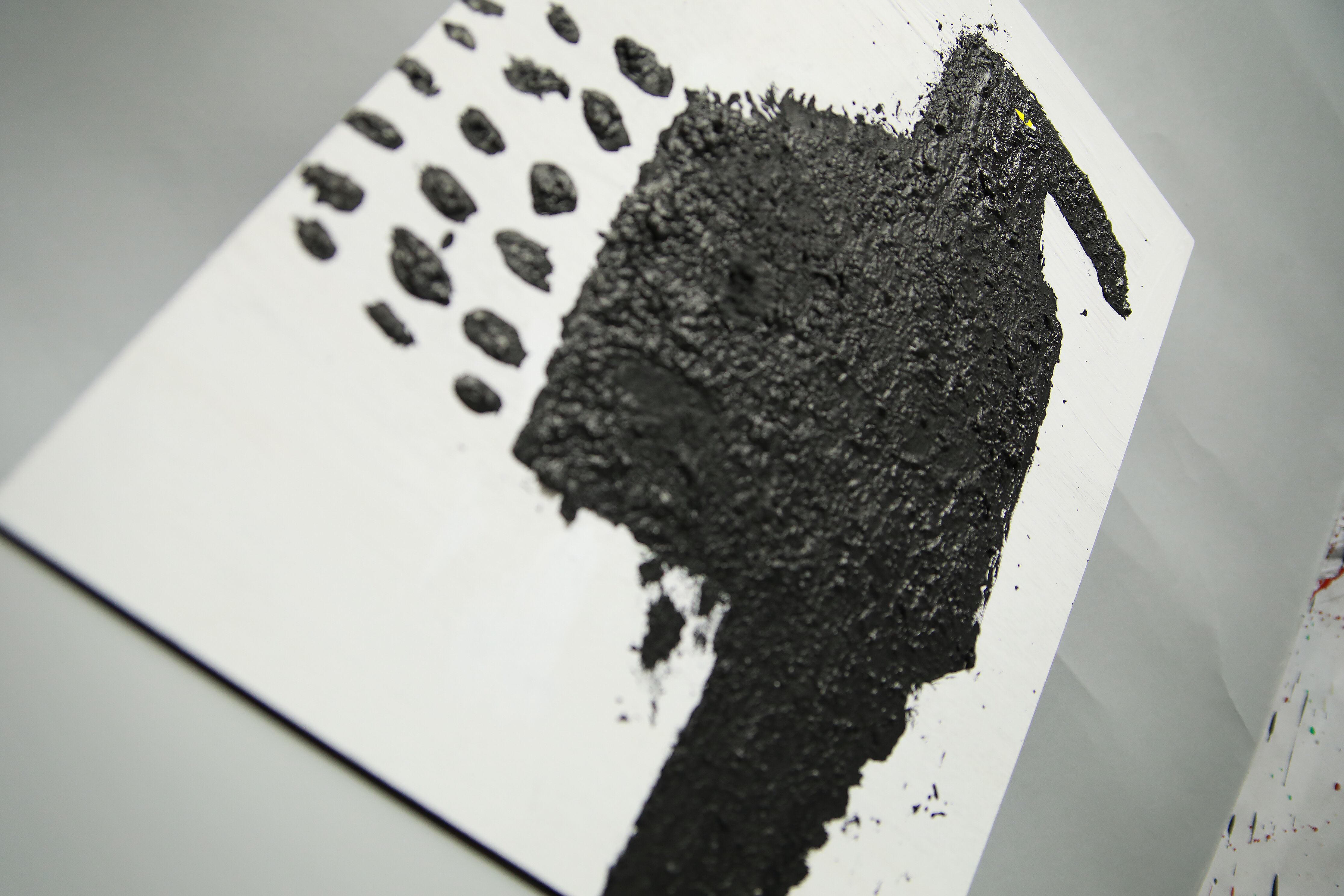 モノトーンの作品にしてみようと白と黒の絵の具で無作為に書いていたら