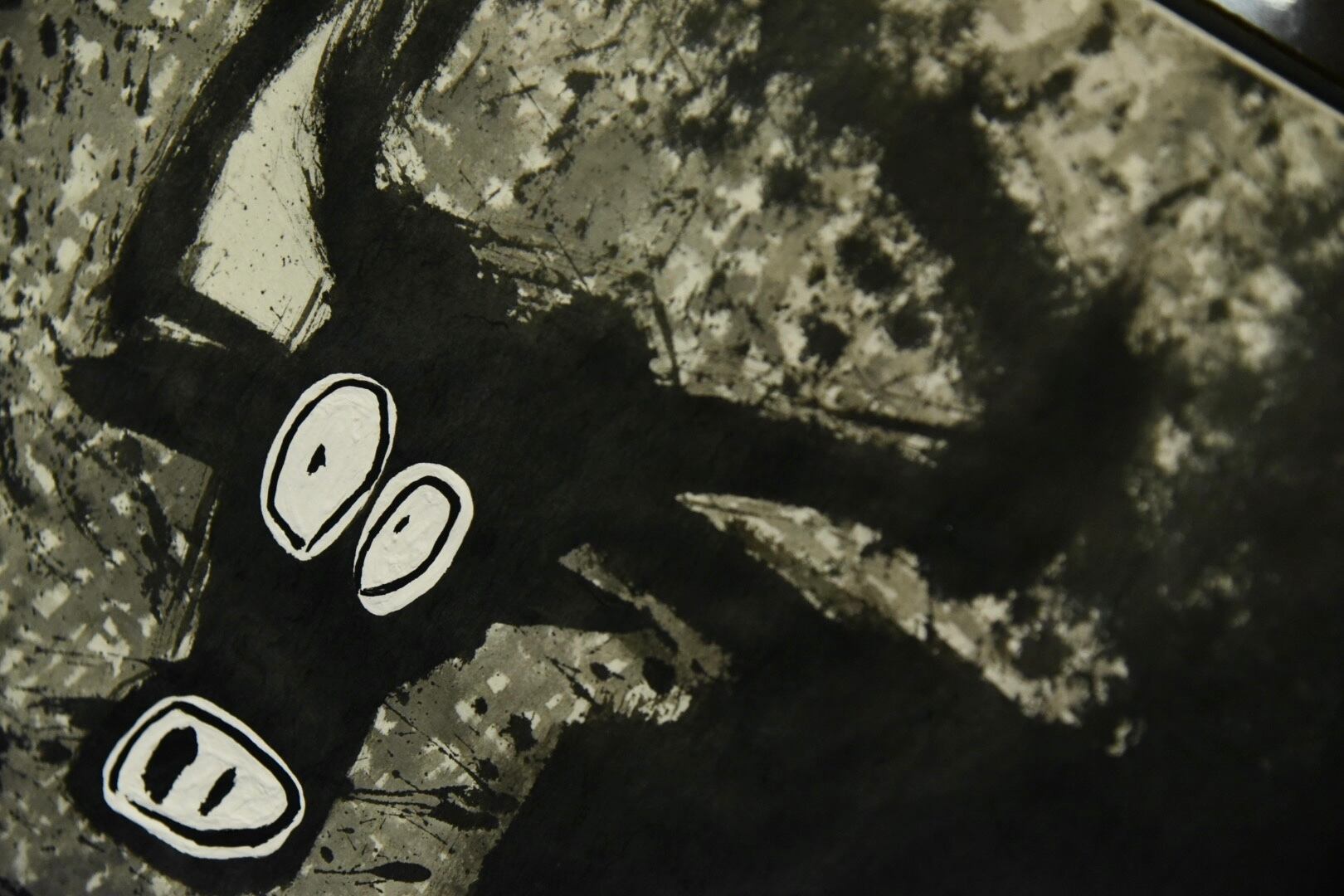 背景の淡墨は全て「牛」の1文字の果てしない欄列。