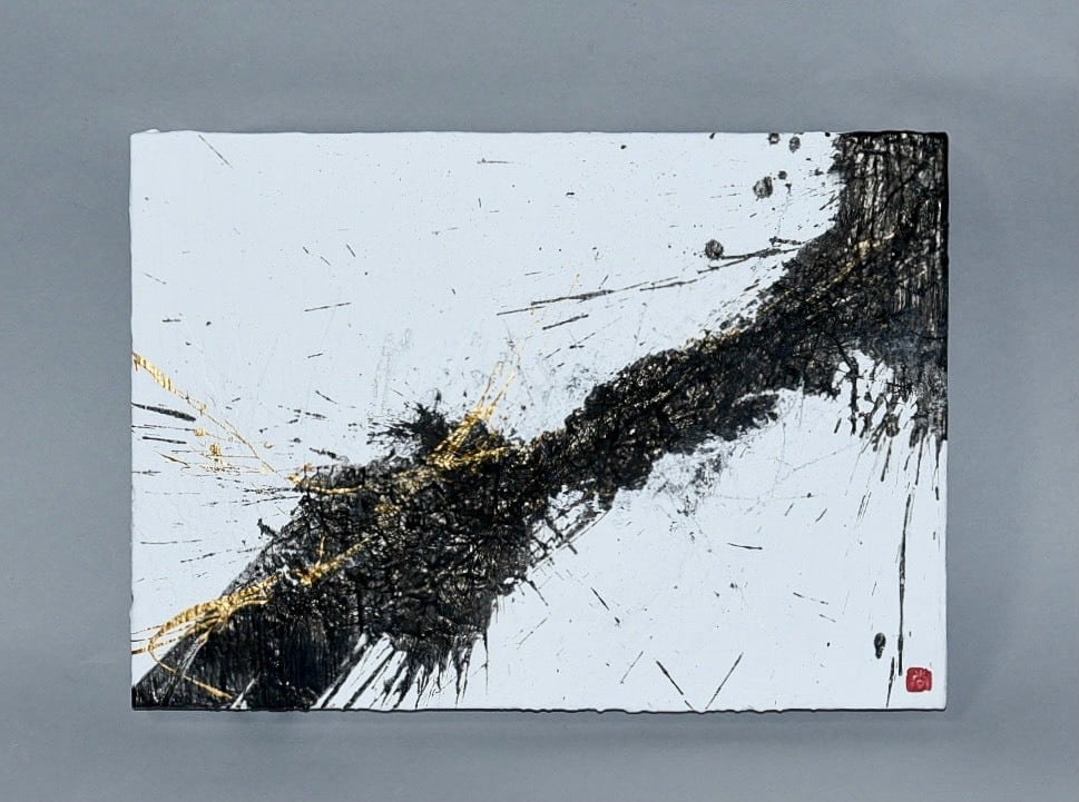 使用画材:墨、アクリル絵の具、ミクスドメディア、木製パネル