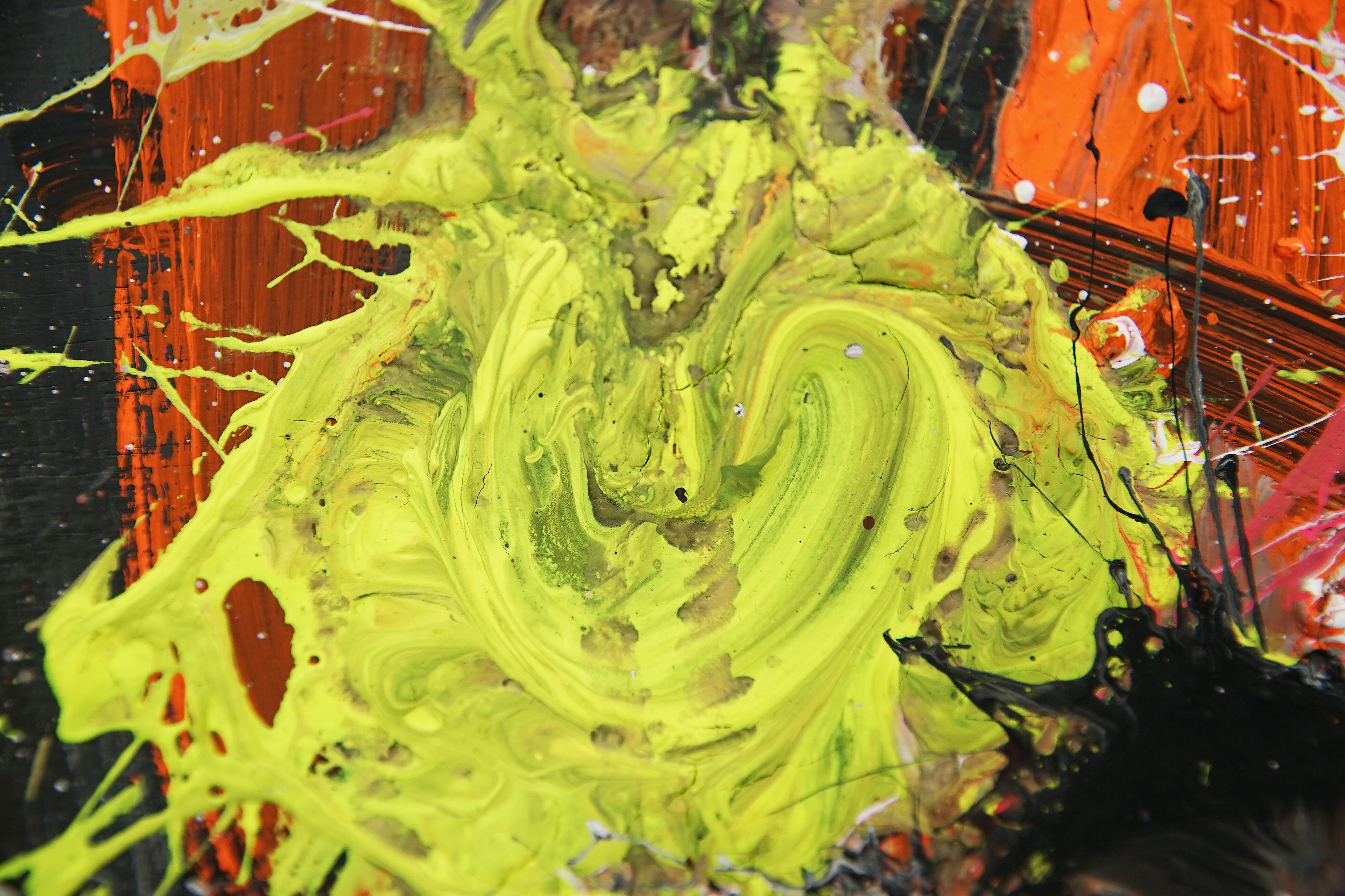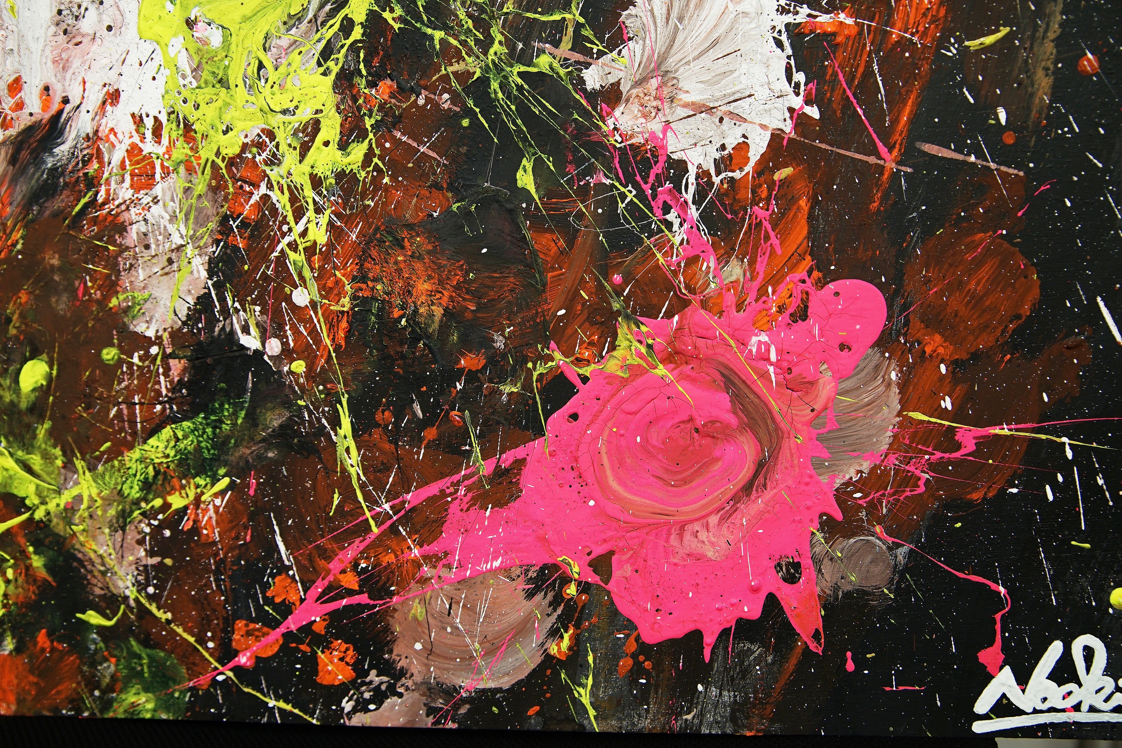 使用画材:アクリル絵の具、蛍光塗料、オイルパステル、マーカー、木製パネル
