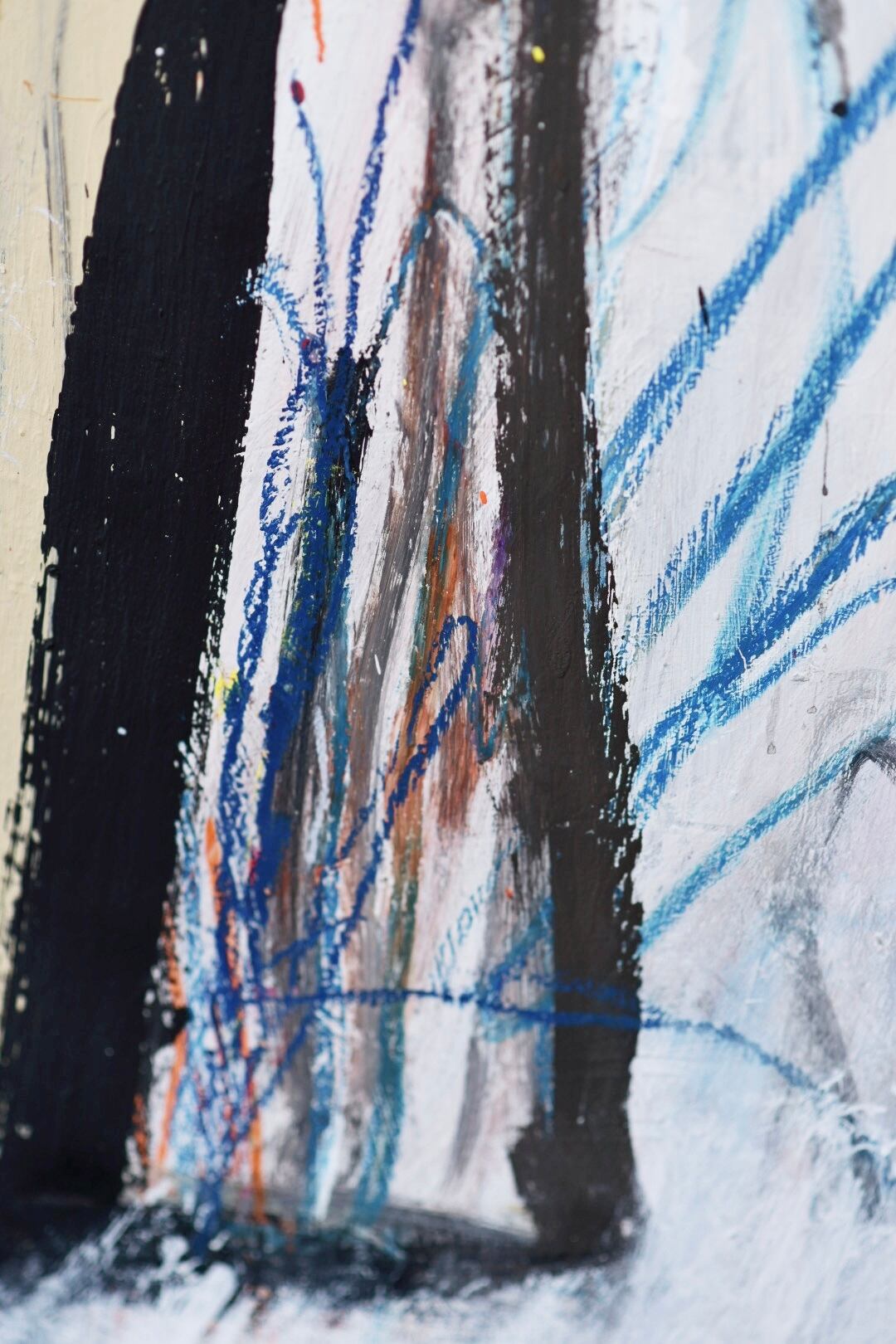 使用画材:アクリル絵の具、オイルパステル、マーカー、木製パネル