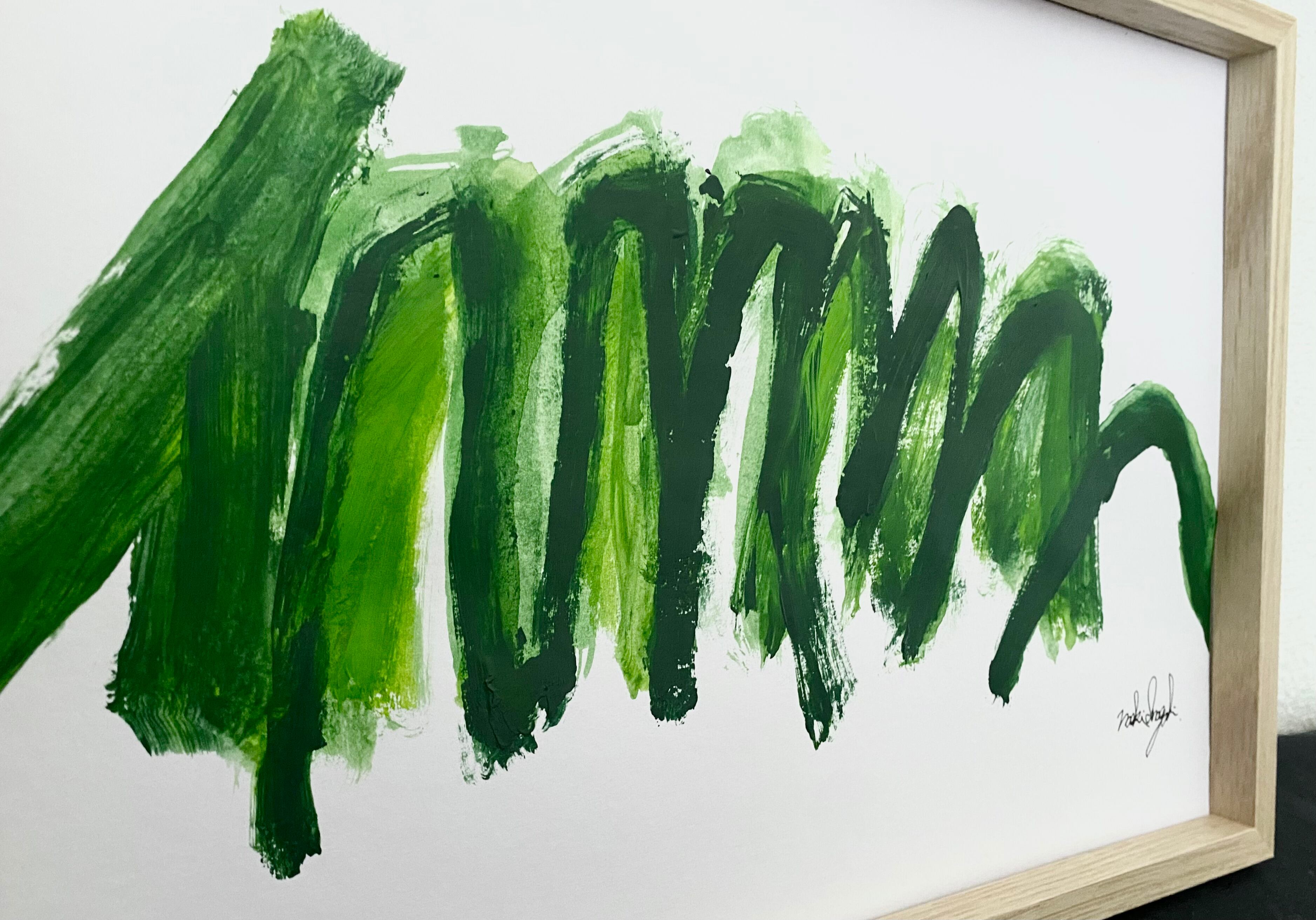 アクリル絵の具と筆のシンプルな線だけで山を表現してみたいと思い