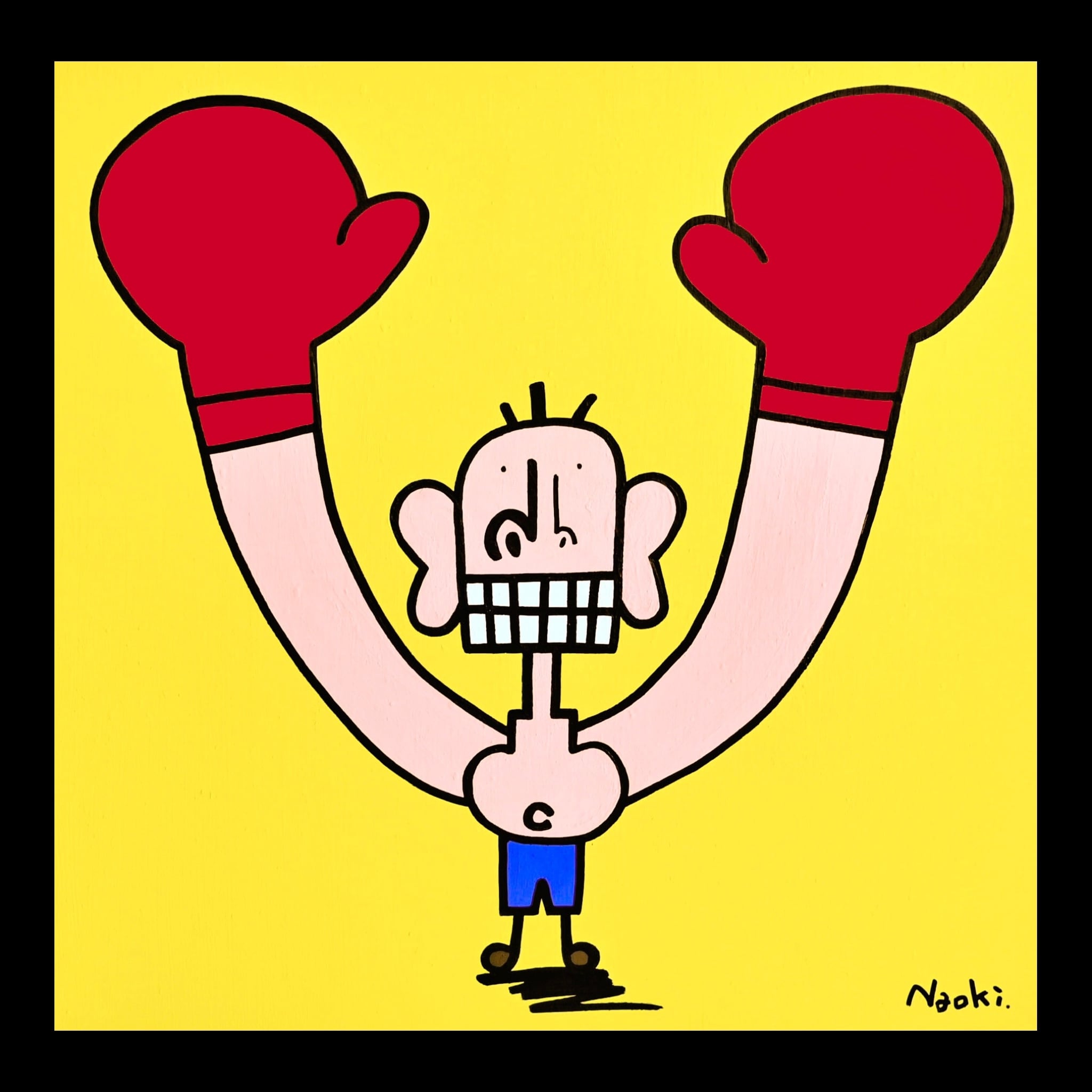 指を指したのが今回の1番の新作の「ボクシンくん」をなんとなく書いた絵だったのです。