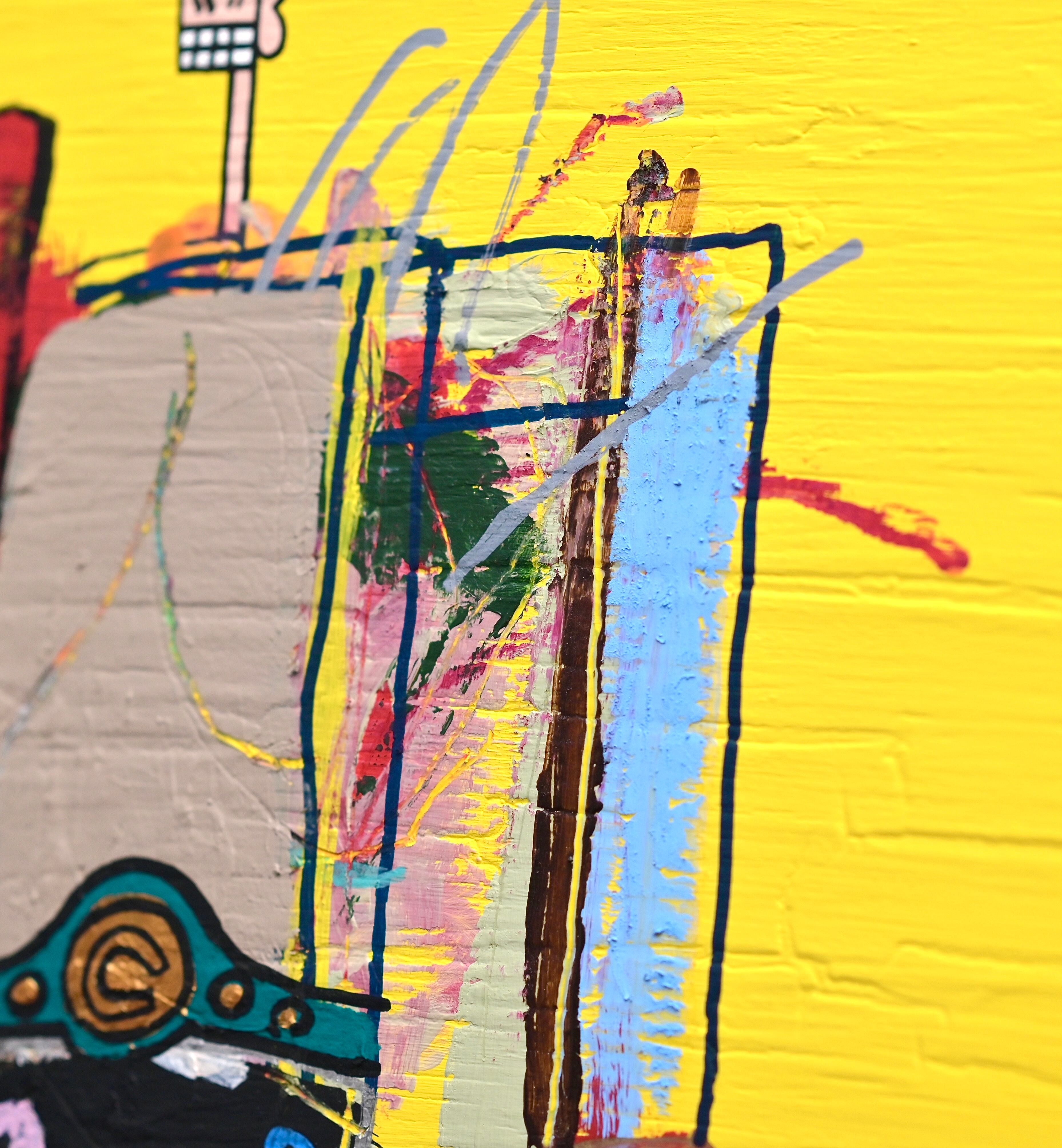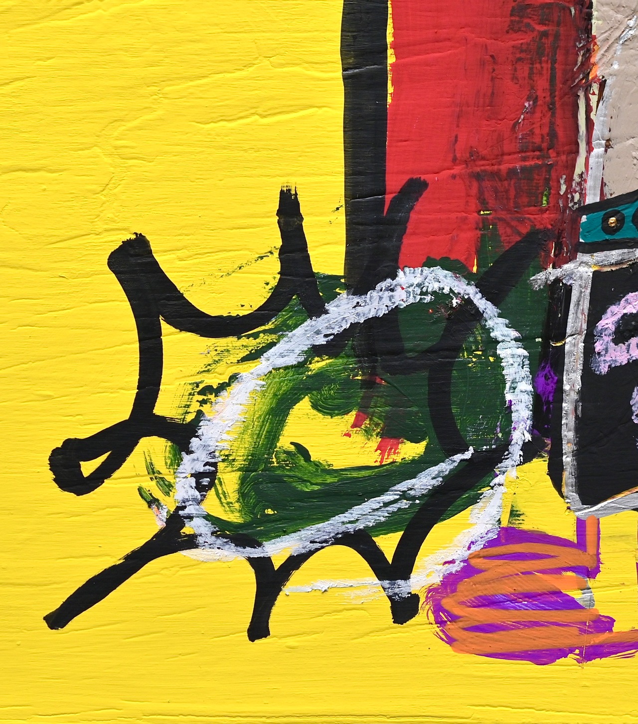 使用画材:アクリル絵の具、マーカー、オイルパステル、木製パネル